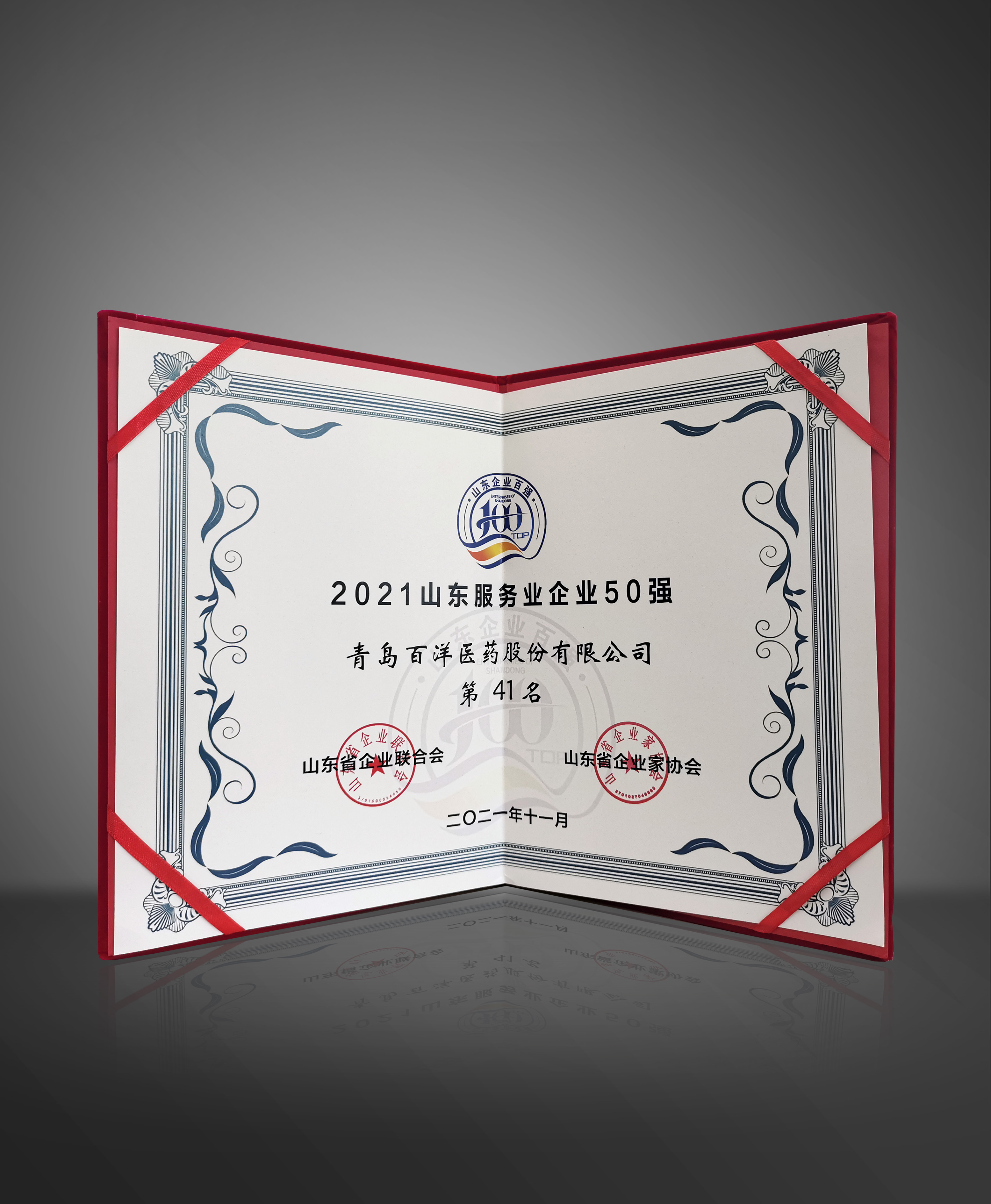 2022年威九国际医药集团荣获青岛市民营企业100强,服务业10强